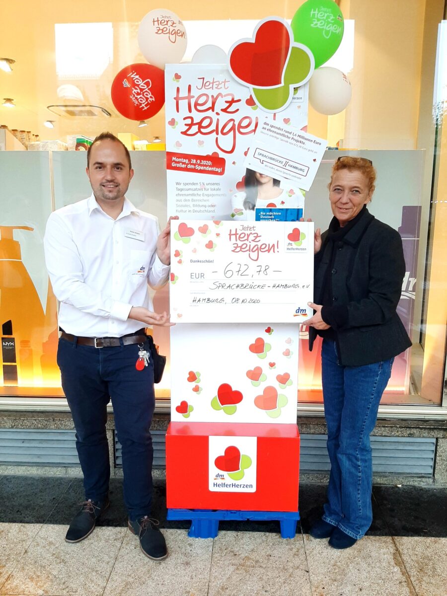 Im Rahmen der Sozialinitiative „Jetzt Herz zeigen!“ spendet dm-drogerie markt jedes Jahr für ehrenamtliche Projekte. Dieses Jahr wurden wir neben vielen weiteren Vereinen und Projekten für unser Engagement mit einer Spende bedacht.