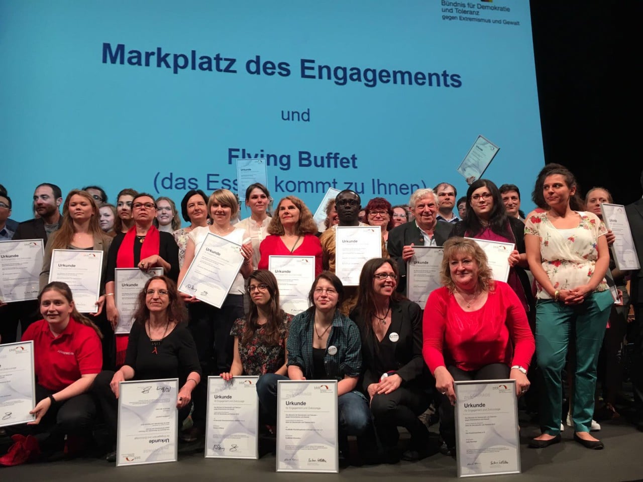 Als einer von 65 Preisträgern des bundesweiten Wettbewerbs »Aktiv für Demokratie und Toleranz« wurde Sprachbrücke-Hamburg e.V. am 23. Mai 2016 in Berlin ausgezeichnet! Insgesamt hatten sich 327 Initiativen um die Preisgelder beworben. Das Bündnis für Demokratie und Toleranz – gegen Extremismus und Gewalt (BfDT) schreibt diesen Wettbewerb seit dem Jahr 2000 jährlich erneut aus und zeichnet damit zivilgesellschaftliche Initiativen und Projekte aus, die sich im Bereich der praktischen Demokratie- und Toleranzförderung engagieren.