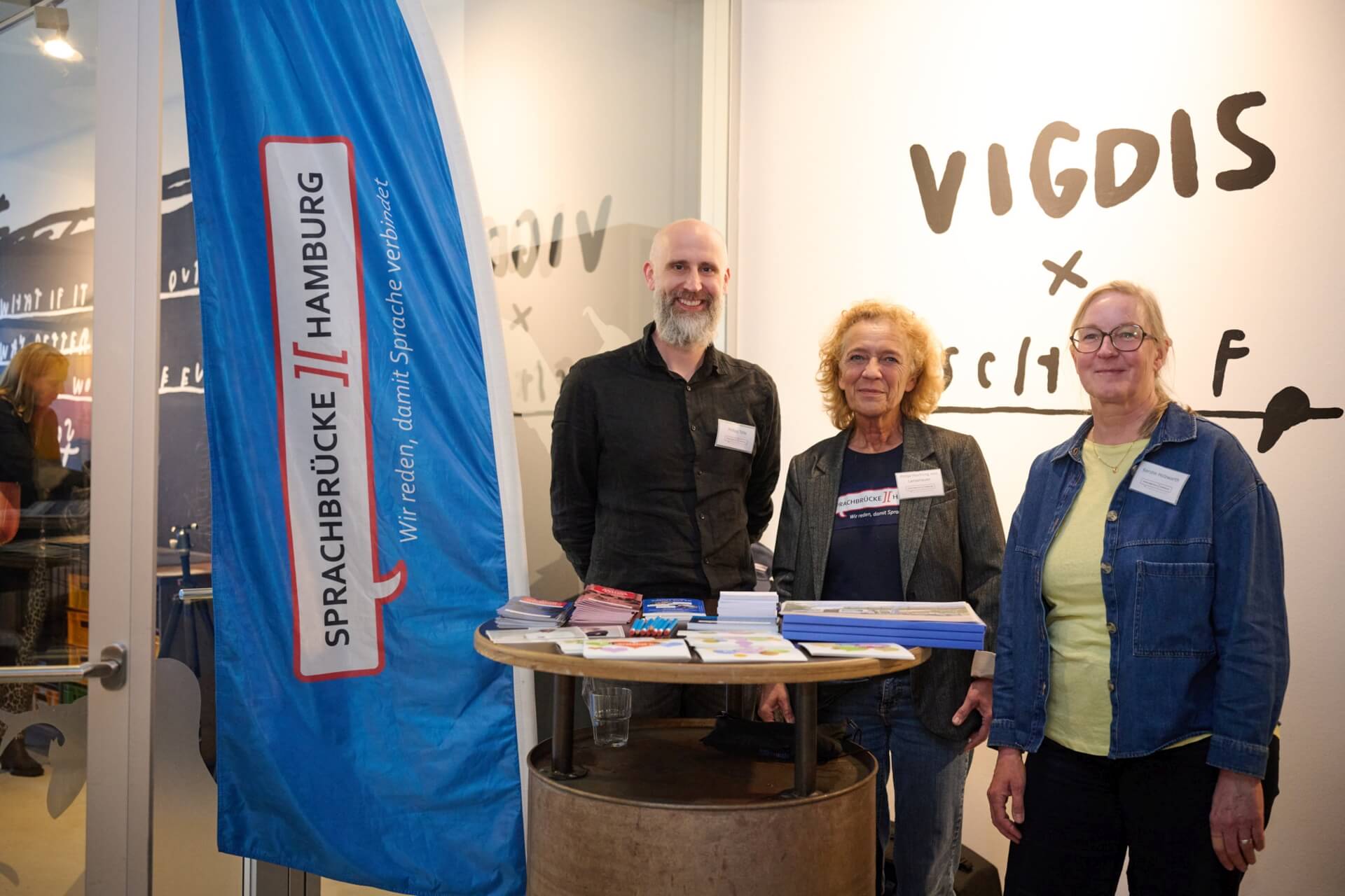Beide fühlen sich eng mit uns verbunden: Krim ist ein Gründungsmitglied von Sprachbrücke-Hamburg e.V. und hat den Verein in seinen ersten Jahren gemeinsam mit Annja Haehling von Lanzenauer aufgebaut.